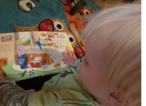 Es erwartet uns eine Rundreise durch ihre Wohnung – so kann man die Küche, das Wohnzimmer, das Kinderzimmer, das Schlafzimmer, sowie den Balkon erkunden. Sehr detailgetreu wird die Inneneinrichtung dargestellt, wie im echten Leben eben. Die Familie benötigt auf jeder Doppelseite von insgesamt vier, Gegenstände, die für eine Tätigkeit benötigt werden. Das Kind kann nun selbst erkunden, welches gemeint ist. Die Altersangabe von 2 Jahren halte ich für genau richtig, Eryk hatte und hat seinen Spaß damit…
